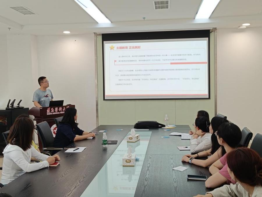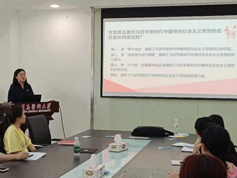 6月20日下午在科研楼504,麻醉医学院党委副书记叶栋恒围绕党章中对习近平新时代中国特色社会主义思想的定位详细解读了党章建设史和党的二十大对党章作出的修改,为党员更好理解党章的精神实质、把握党章一系列规定要求提供了参考。麻醉医学院教工党支部副书记张宇结合自身科研求学经历对开展主题教育的意义和要求,对推动党和国家事业发展,具有重要意义方面进行了深入解读。