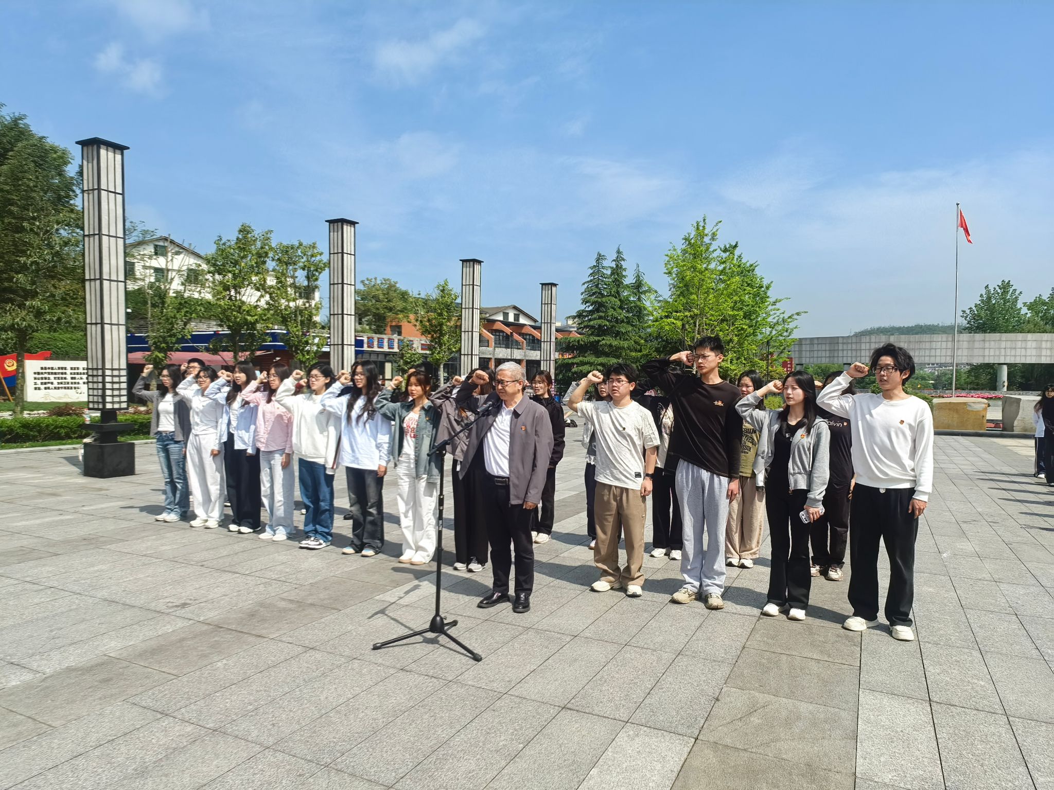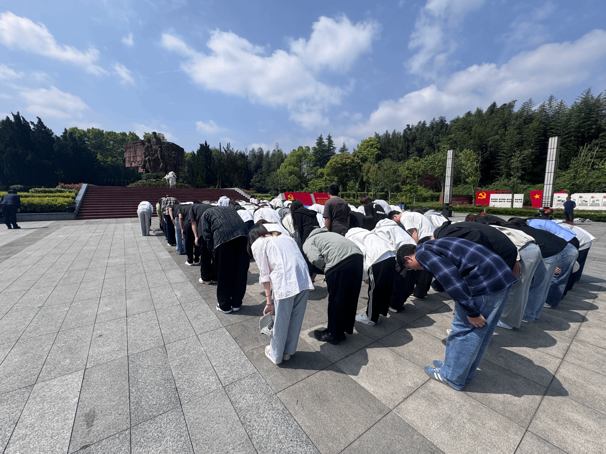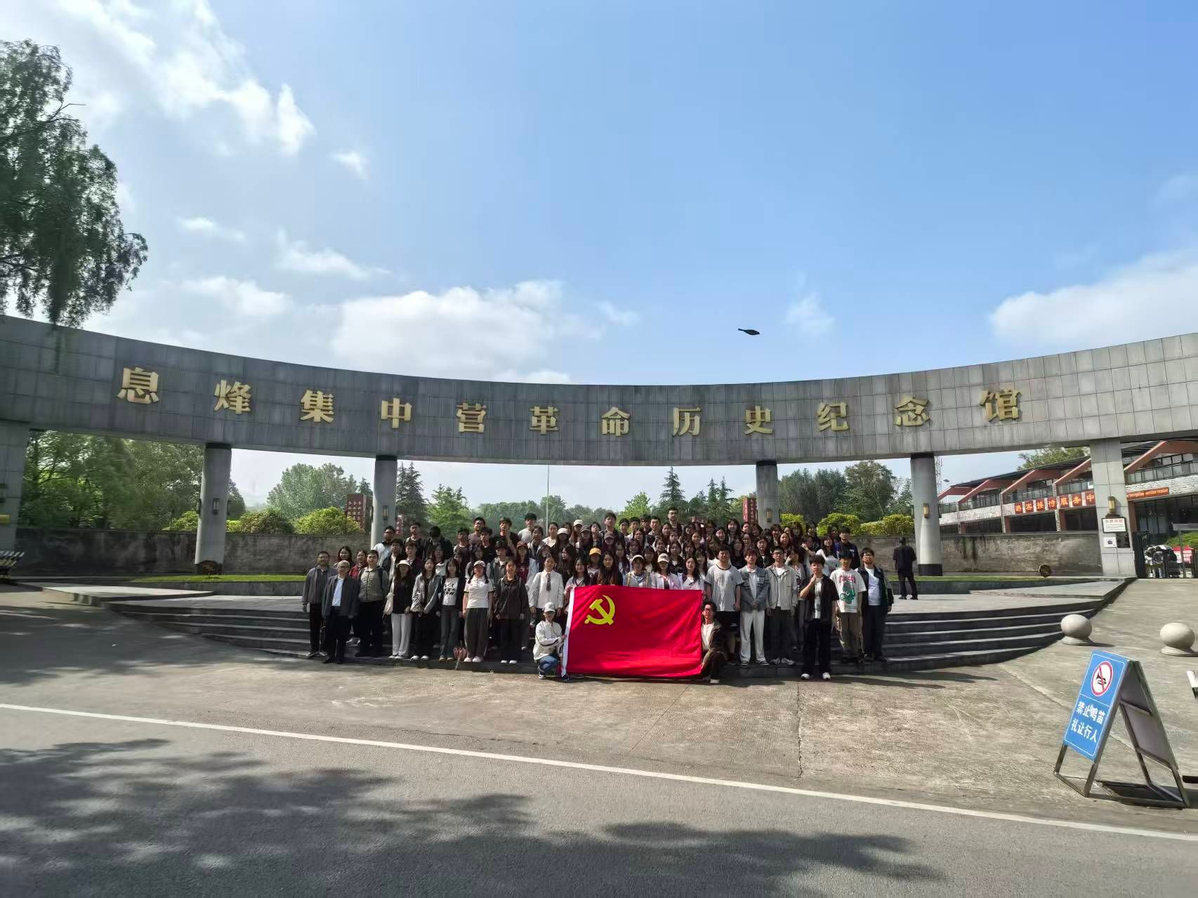 集合整队,铭记初心使命。活动伊始,全体人员在息烽集中营红色大门前整齐列队,拍摄集体照留念。胸前熠熠生辉的党徽,定格下参训人员追寻红色初心、践行时代使命的精神风貌,为本次红色研学拉开序幕。