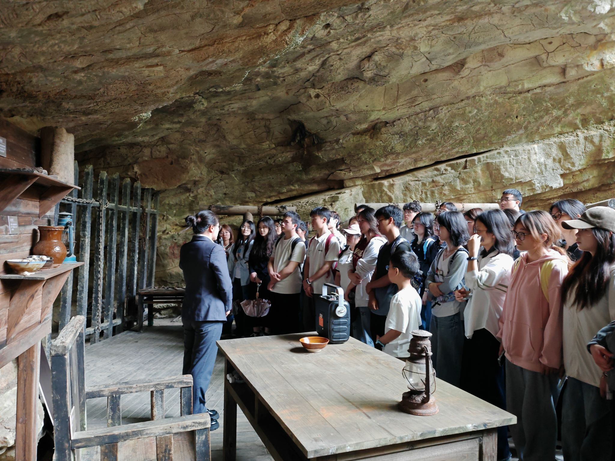 缅怀先烈,深化精神感悟。在《忠魂曲》雕塑广场,全体人员开展向革命先烈敬献花篮、鞠躬致敬,深切缅怀先辈英勇事迹。在庄严肃穆的氛围中,大家重温革命历史,感悟革命精神的深刻内涵,进一步坚定理想信念、砥砺党性修养。随后,在讲解员引导下,全体人员有序参观息烽集中营革命历史纪念馆与旧址,参观时长 2 小时 20 分钟。泛黄的历史照片、珍贵的文物史料、生动的现场讲解,全方位还原了革命先辈在艰苦卓绝环境中坚守信仰、英勇斗争的峥嵘岁月,让大家沉浸式接受红色洗礼。在旧址猫洞区域,全体人员参与《血色猫洞,永铸忠魂》沉浸式体验教学。授课教师结合历史场景开展现场授课,通过场景还原、细节解读等方式,带领大家切身感受革命先辈坚定的理想信念与无畏的斗争勇气,进一步筑牢思想根基、厚植爱国情怀。