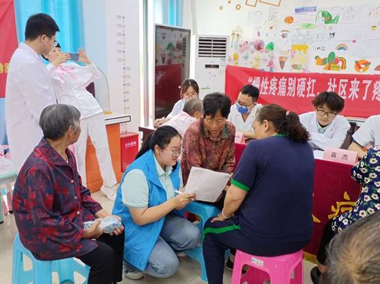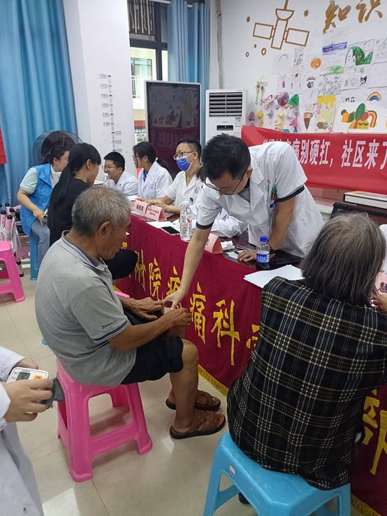 疼痛诊疗:专业力量解民之忧。“战痛先锋”实践队联合遵义医科大学附属医院疼痛科、麻醉科专家开展公益义诊。为30余名慢性疼痛患者提供“血压检测+疼痛评估”双筛查,专家一对一分析骨质疏松、骨关节炎等病因,给出个性化干预方案,3名腰椎间盘突出重症患者获转诊绿色通道。实践队员此前到我校附属医院疼痛科经专项培训,熟练运用疼痛量表与红外热像仪辅助诊疗,有效提升服务质量。活动中,疼痛科主任秦榜勇还收到了来自社区小朋友的手工绘画,表达对团队帮助其家人缓解疼痛的感激。
