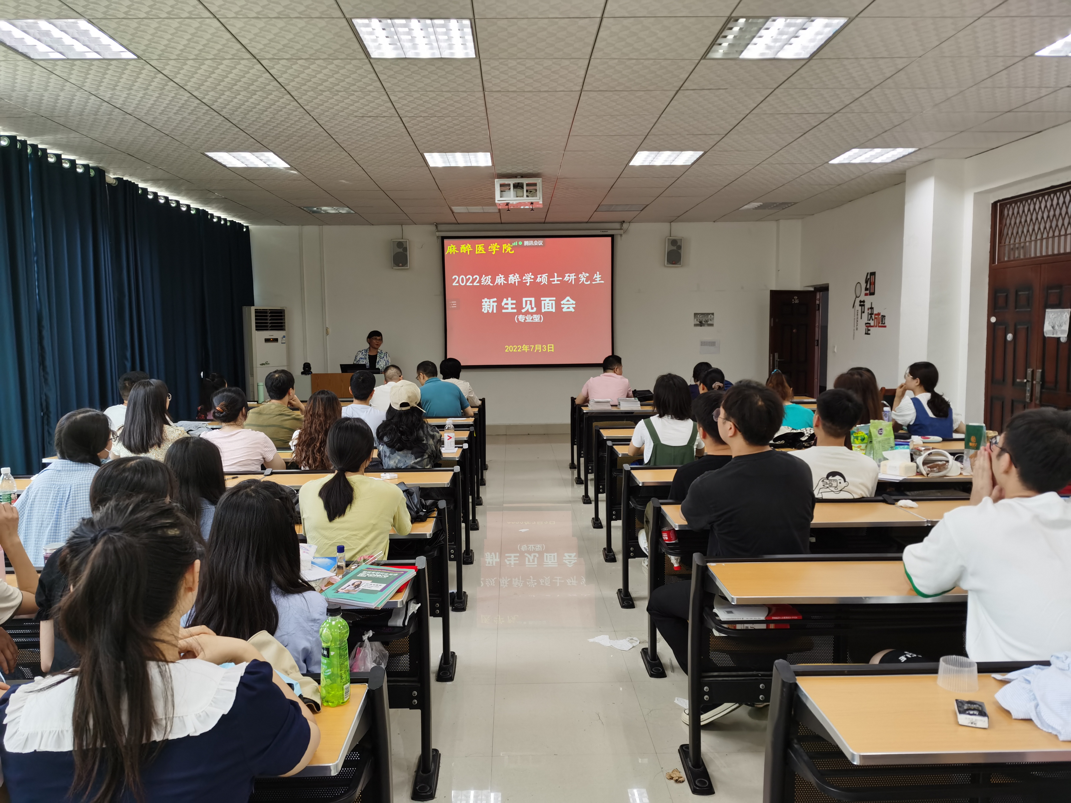 7月3日,麻醉医学院在新蒲校区2号实验楼麻醉示教室召开了2022级麻醉学专业型硕士研究生新生见面会。会议由副院长张红教授主持,麻醉医学院副院长王海英教授、麻醉学学科带头人朱昭琼教授、部分专业型研究生导师以及青年导师参加;联合培养单位贵州省人民医院、六盘水市人民医院、毕节市第一人民医院、兴义市人民医院导师,三位第二导师通过腾讯会议线上参会。