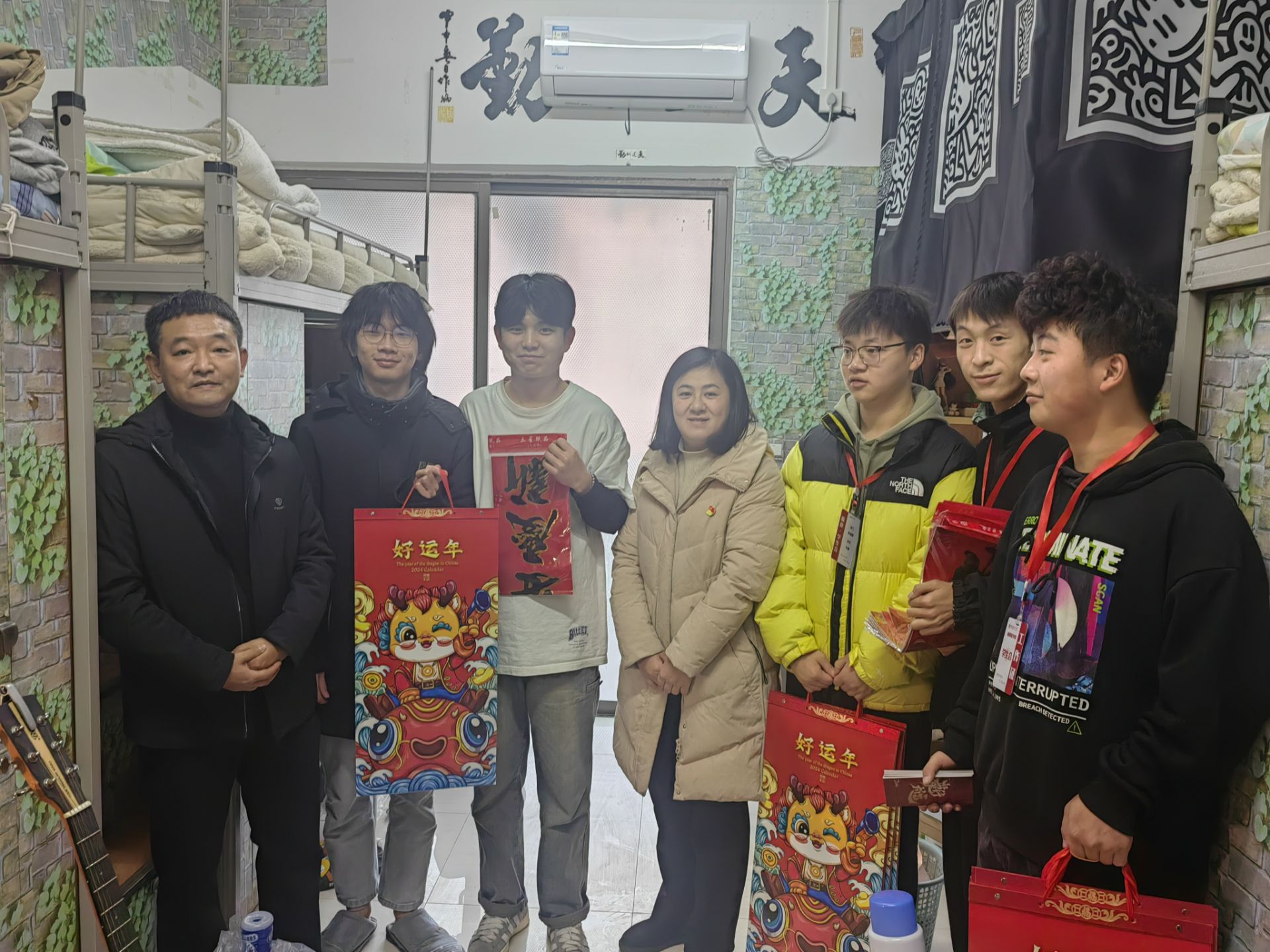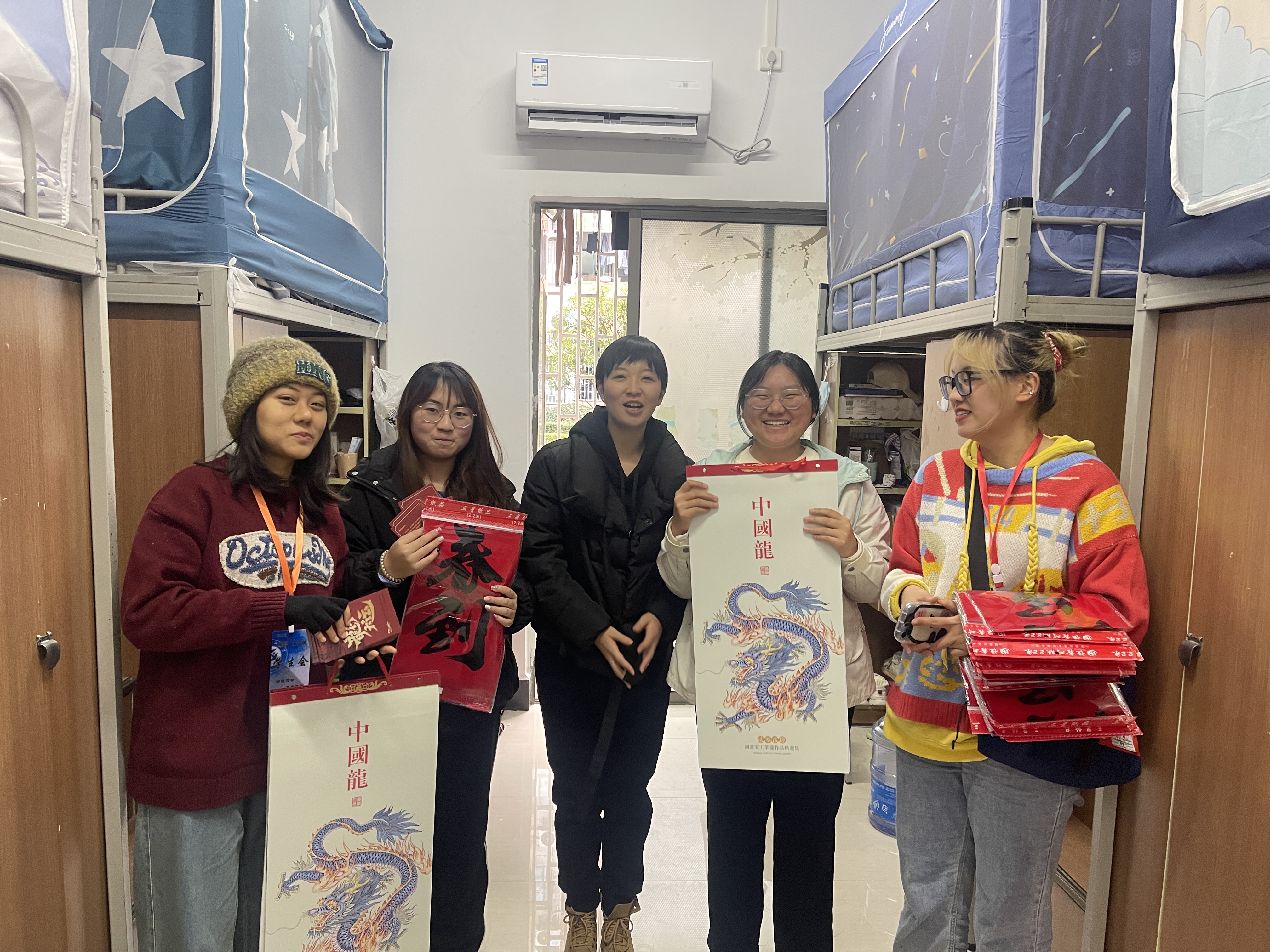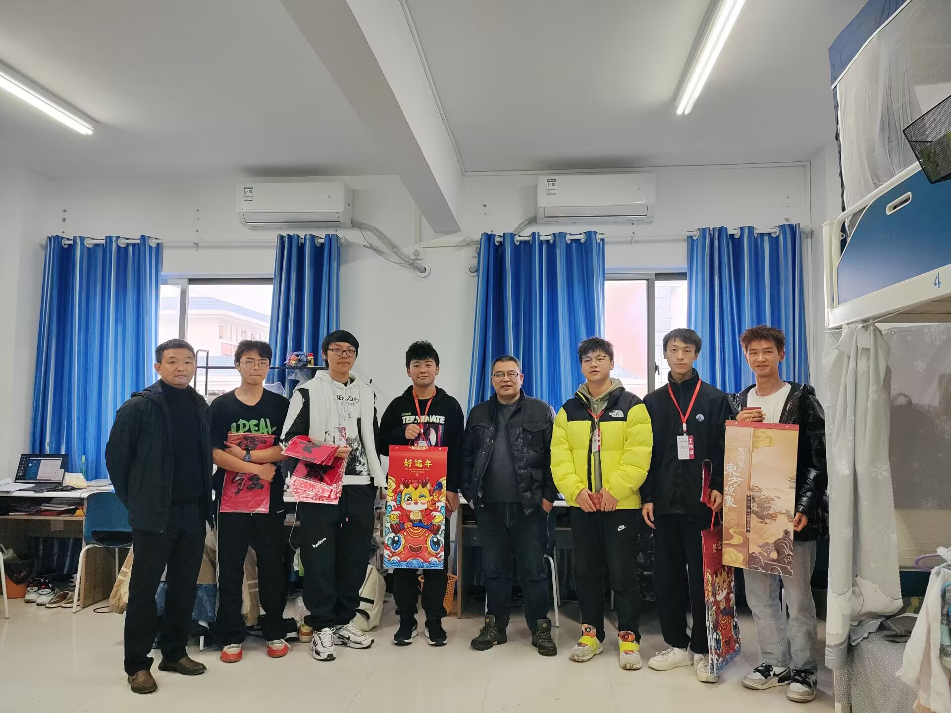 学院党委副书记叶栋恒、学生第二党支部书记陈俊第一党支部副书记韦锋、团委副书记王唯和学生会的同学们一起来到寝室,走访慰问学院同学,将新年挂历、春联同新年祝福贺卡一起送到了学院学子的手中,寄出对我院学子的新年祝愿,并勉励参照新年挂历大家只争朝夕,不负青春韶华,提前做好年度规划,积极参加各项活动,争取在新的一年取得更大的进步。