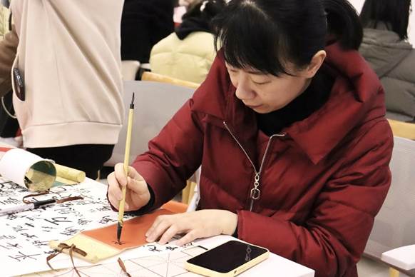 师生联动深化文化传承实效:麻醉医学院特邀书法嘉宾,为同学们提供指导并书写定制春联,笔走龙蛇的书法技艺引来阵阵喝彩。活动全程由学院师生共同组织协调,从场地布置到环节衔接,充分展现了学院的组织能力与育人初心。此次活动不仅有效锻炼了学生的动手能力与创造力,更在沉浸式体验中深化了大家对中华优秀传统文化的认同与热爱。