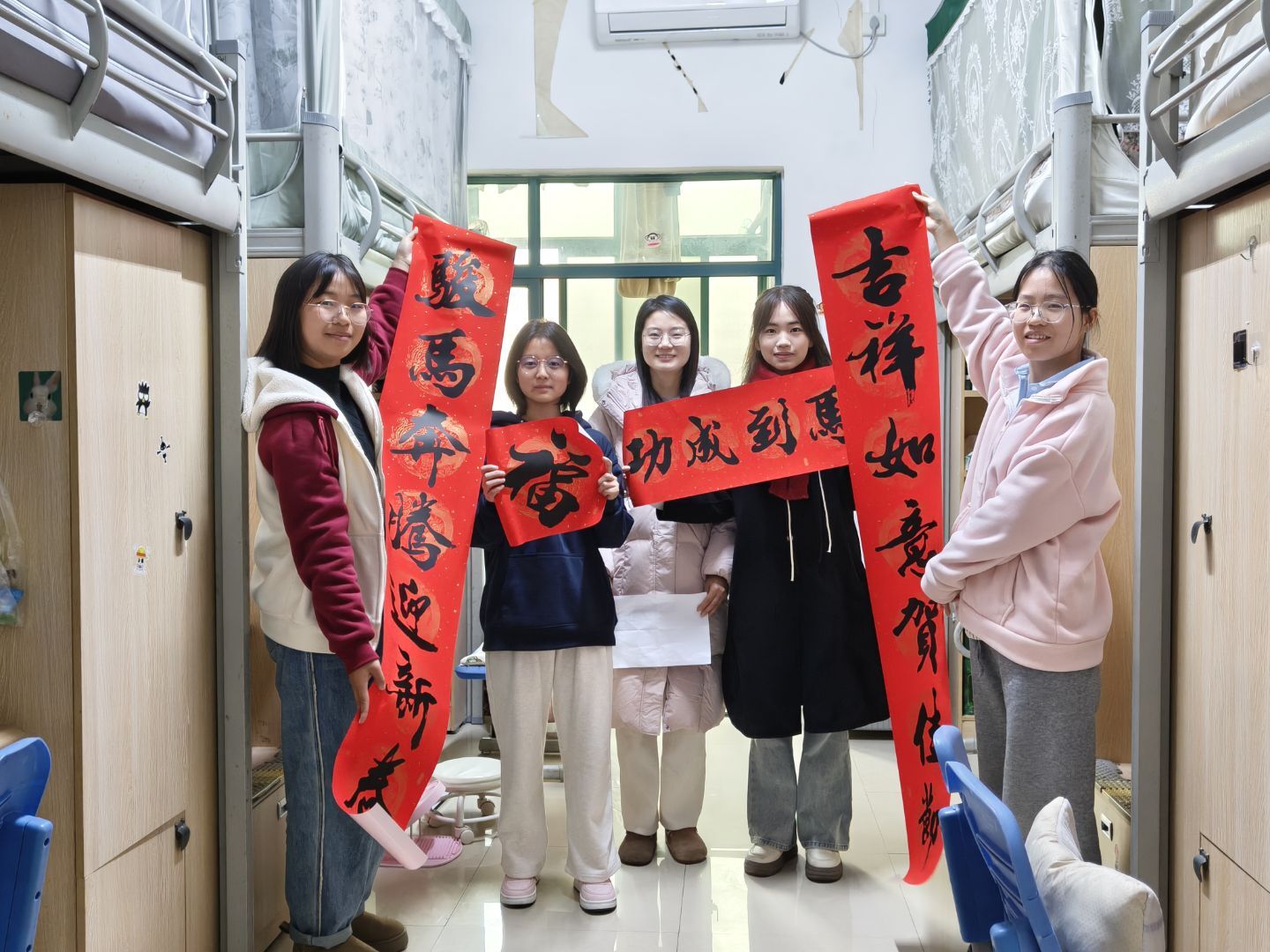 为弘扬中华优秀传统文化、营造温馨宿舍氛围,为广大学子送去新年慰问,近日,麻醉医学院组织师生走进学生寝室,开展 “墨香暖寝 福伴医路”送春联、台历及便利贴活动,将新春祝福与实用好物送到同学们身边。